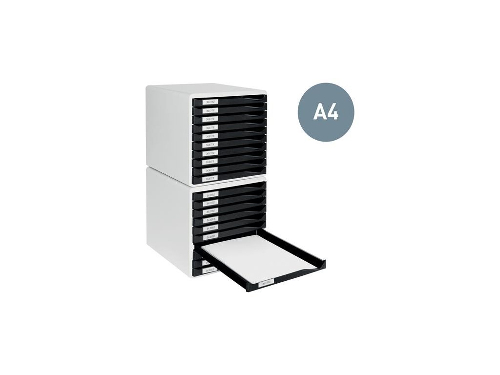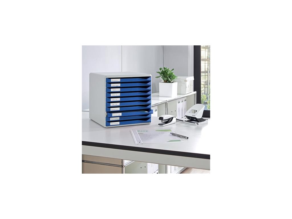 Atraktívný, bytelný zásuvkový box pre uloženie dokumentov, písaciech potreb a ďalšie predmetov, 10 zásuviek, sivý box s farebnými zásuvkami, robustný a stabilný Značka: LEITZ Výrobca: Esselte Kft. Adresa: 1139 Budapest, Lomb u. 37-39. A ép. II. 8., Hungary Web: https://www.accobrands.com/brands/ Email: hungarymarketing@acco.comDodatočné parametre