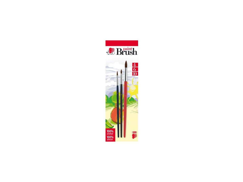 Štetec, sada, okrúhly, no. 4-6-10, drevený, ICO "Ježko", mix farieb