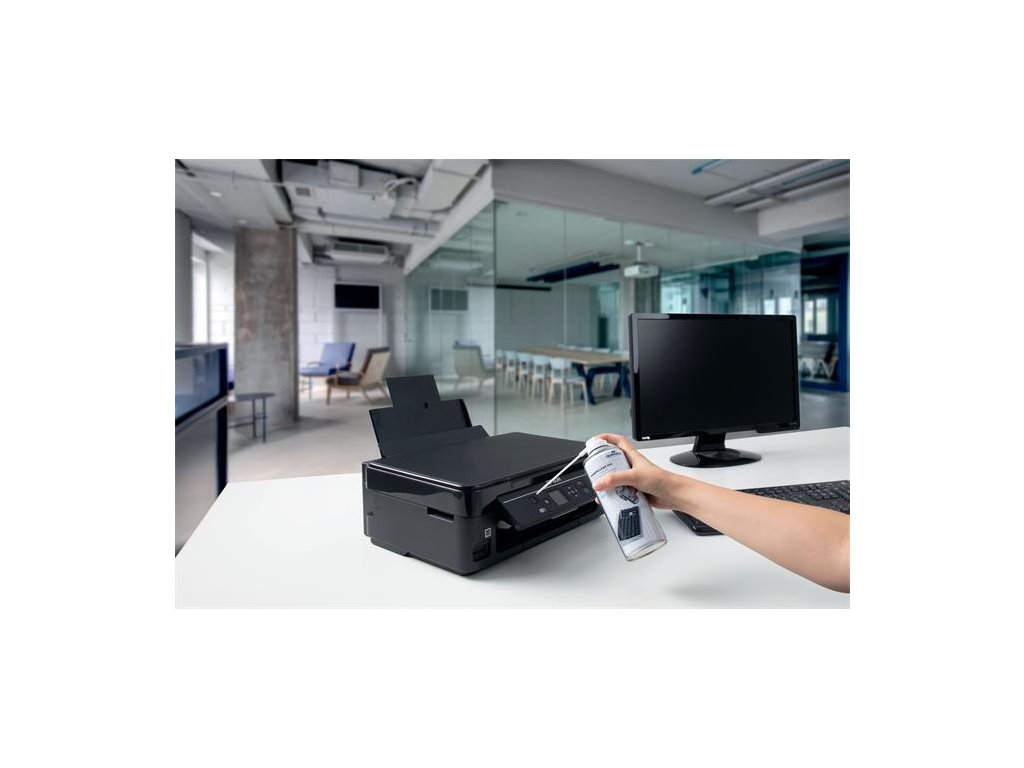 Stlačený vzduch s praktickou rozprašovacou trubicou, najlepší účinok sa dosiahne, keď je čistený povrch vo vzdialenosti cca. 20 cm, striekajte krátkymi ťahmi-ideálny na čistenie elektronických kancelárskych zariadení a fotoaparátov
