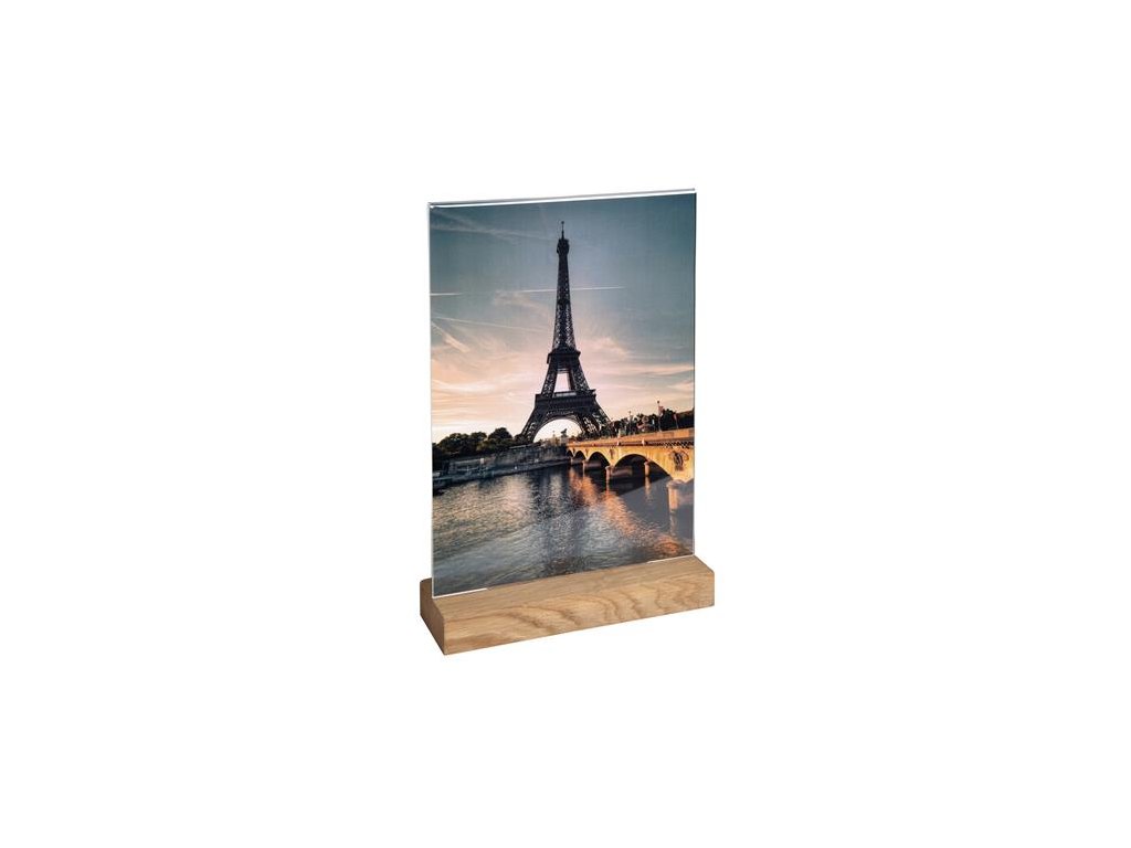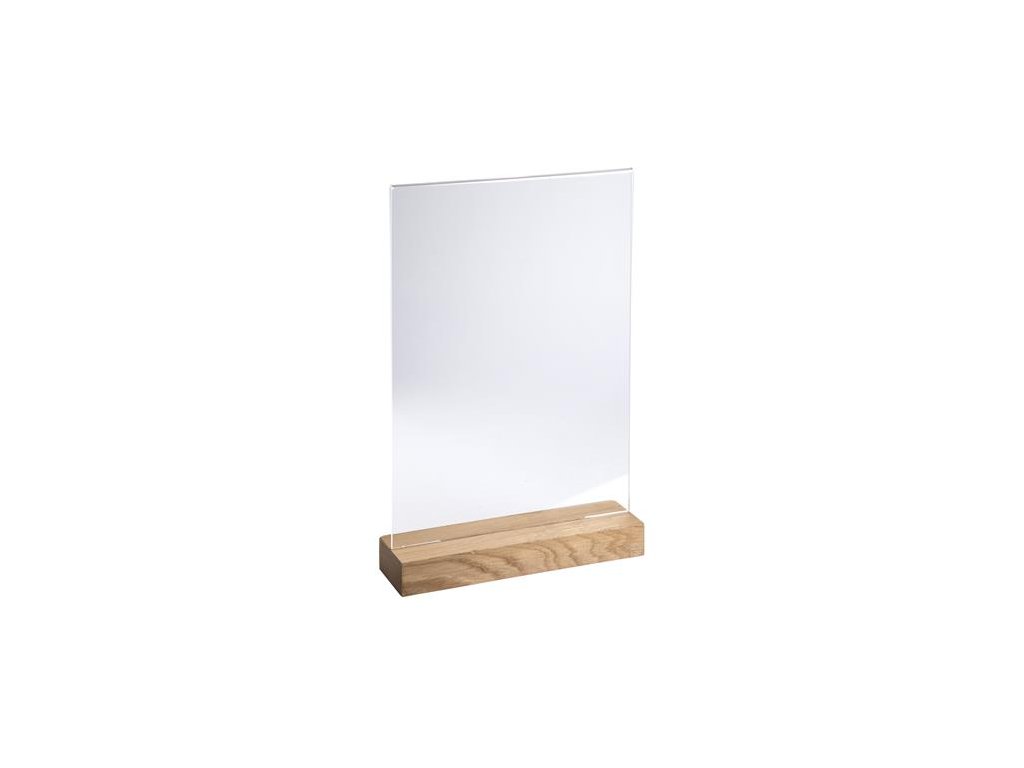 Ideálny na vystavenie fotografií, informácií, jedálnych lístkov či ponúk na stole. -vyrobený z kvalitného akrylu zvislá (stojatá) orientácia -priehľadný -podstavec z dreva -obojstranný -rozmery: 210 x 50 x 330 mm -odolný voči UV žiareniuDodatočné parametre