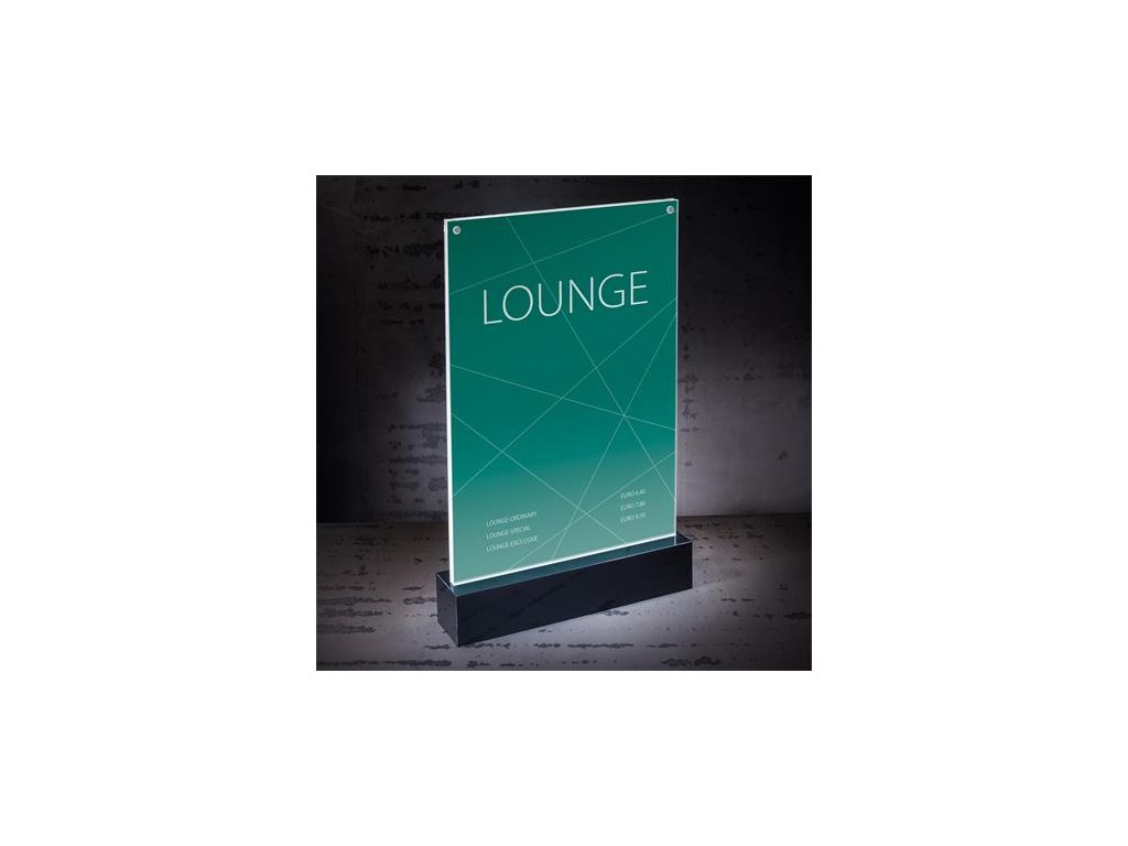 - vhodný na jednoduché a príťažlivé prezentovanie letákov, informačných materiálov - možnosť prezentovania 2 strán - priehľadný akrylový materiál - listy sa dajú zasunúť z boku alebo zhora - s LED osvetlením - napájanie: 4 ks 1,5 V AA batérie (nie sú súčasťou balenia) Značka: SIGEL Výrobca: SIGEL GmbH Adresa: Baeumenheimer Strasse 10, 86690 Mertingen, Germany Web: www.sigel-office.com Email: sandra.geist@sigel.deDodatočné parametre