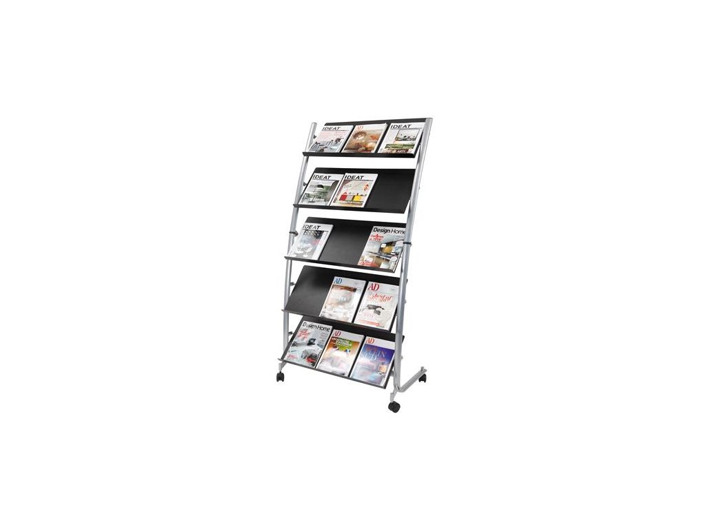 Stojan na katalógy, mobilný, 5 priečinkov, ALBA, sivý/čierny