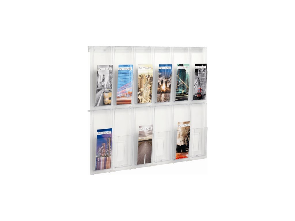 Stojan na katalógy, nástenný, 1/3 A4, 12 priečinkov, HELIT "Placativ", priehľadný