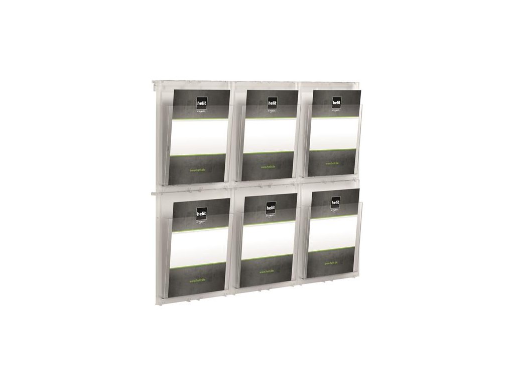 Stojan na katalógy, nástenný, A4, 6 priečinkov, HELIT "Placativ", priehľadný