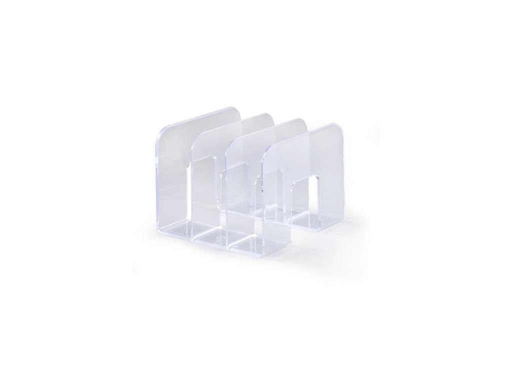 Stojan na katalógy s tromi oddielmi Šírka: 64 mm Farba: priehľadná Rozmery: 215 x 210 x 165 mm (š x v x h)Dodatočné parametre