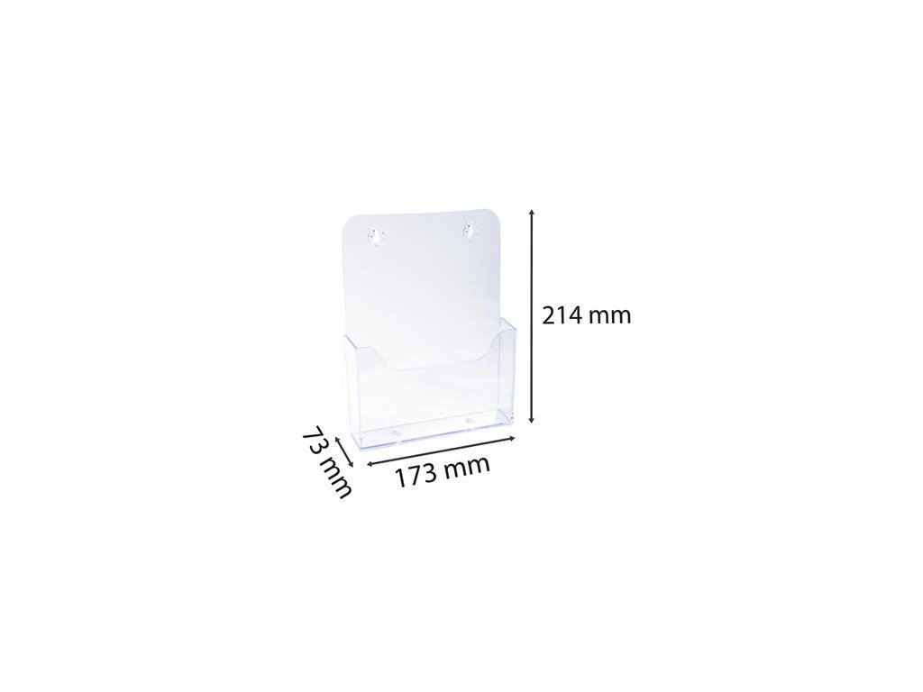 -ideálny doplnok na recepciu, do show roomov alebo čakarní -plast-1 priečinok -k stojatým dokumentom formátu A5 -farba: priehľadná -hĺbka priečinku: 28 mm -rozmery: 73 x 214 x 173 mm (š x v x d)