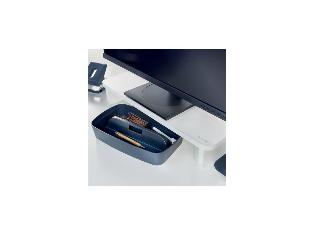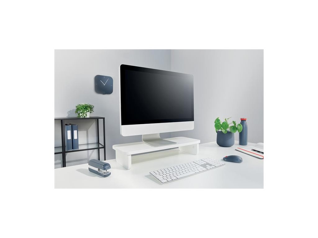 Ergonomicky navrhnutý stojan na monitor pre maximálne pohodlie na pracovisku Zdvihne obrazovku počítača, tým zvyšuje pohodlie pri jeho sledovaní a pomáha zlepšiť držanie tela. Podporuje produktivitu práce, pretože ponúka ďalšie úložné priestory, ktoré udržiavajú stôl usporiadaný a bez neporiadku. Úložný priestor pod stojanom má rozmery 479 × 210 × 84 mm (š × h × v) a zmestí sa doňho klávesnica široká až 470 mm Úložný priestor možno využiť aj na dokumenty, knihy, zápisníky, mobilné telefóny, ceruzky a ďalšie veci. Vhodné pre monitory s uhlopriečkou až 24", maximálne zaťaženie 20 kg. Čistý povrch odolný voči poškriabaniu, ktorý bráni vzniku odtlačkov. Dodáva sa zabalený naplocho a dá sa rýchlo a ľahko zostaviť. Kolekcia Leitz Ergo spája štýl s prvotriednou kvalitou a vytvára zdravé a aktívne pracovné prostredie. Značka: LEITZ Výrobca: Esselte Kft. Adresa: 1139 Budapest, Lomb u. 37-39. A ép. II. 8., Hungary Web: https://www.accobrands.com/brands/ Email: hungarymarketing@acco.comDodatočné parametre