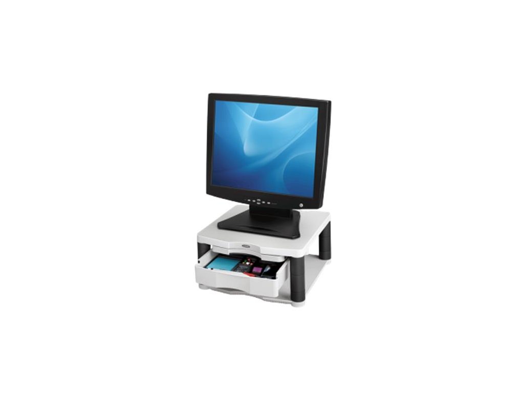 Stojan na monitory, so šuflíkom, FELLOWES "Premium Plus", sivý