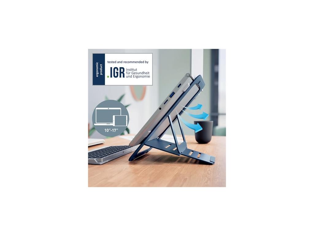 Pevný a odolný ergonomický hliníkový stojan na notebook pre maximálne pohodlie na pracovisku či na cestáchZdvíha notebook a jeho displej, a tak zvyšuje pohodlie pri práci a pomáha zlepšiť držanie tela pri sedení alebo státí. Zlepšuje tak zdravie a podporuje aktívny spôsob práce