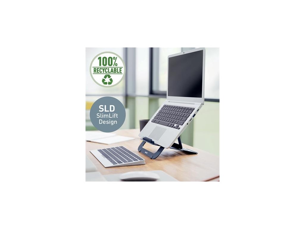 Ultraplochý dizajn SlimLift (SLD) uľahčuje používanie nastaviteľného stojana v akomkoľvek, aj veľmi obmedzenom, priestore doma, v kancelárii alebo počas cestovania