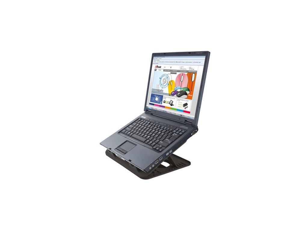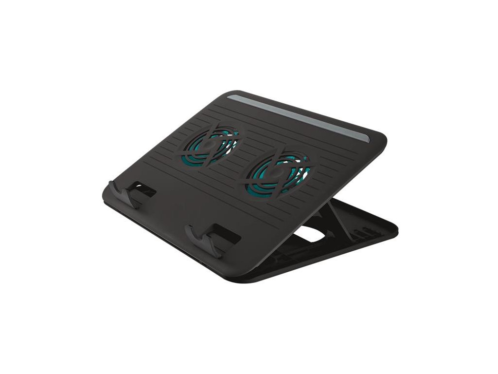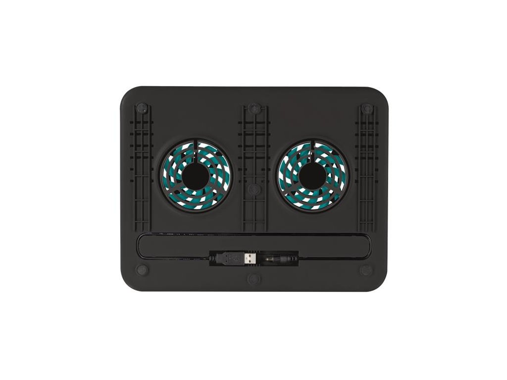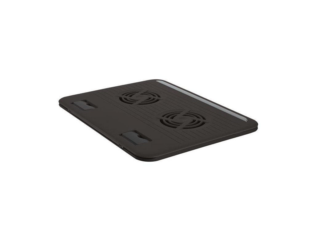pohodlný sklon a dva vstavané tiché ventilátory, vďaka ktorým poskytuje naklonenú pozíciu na pohodlné písanie a ochranu pred prehriatím nastaviteľný v 8 polohách pre dosiahnutie optimálnej výšky a uhla sklonu monitora a klávenice zlepšuje účinnosť chladenia notebooku a chráni nábytok alebo nohy pred teplom vhodný pre ľubovoľný notebook a netbook displejom do veľkosti 16" ventilátory sú napájané cez USB port, takže k prevádzke podložky netreba elektrickej zásuvky ochranné gumené podložkyDodatočné parametre