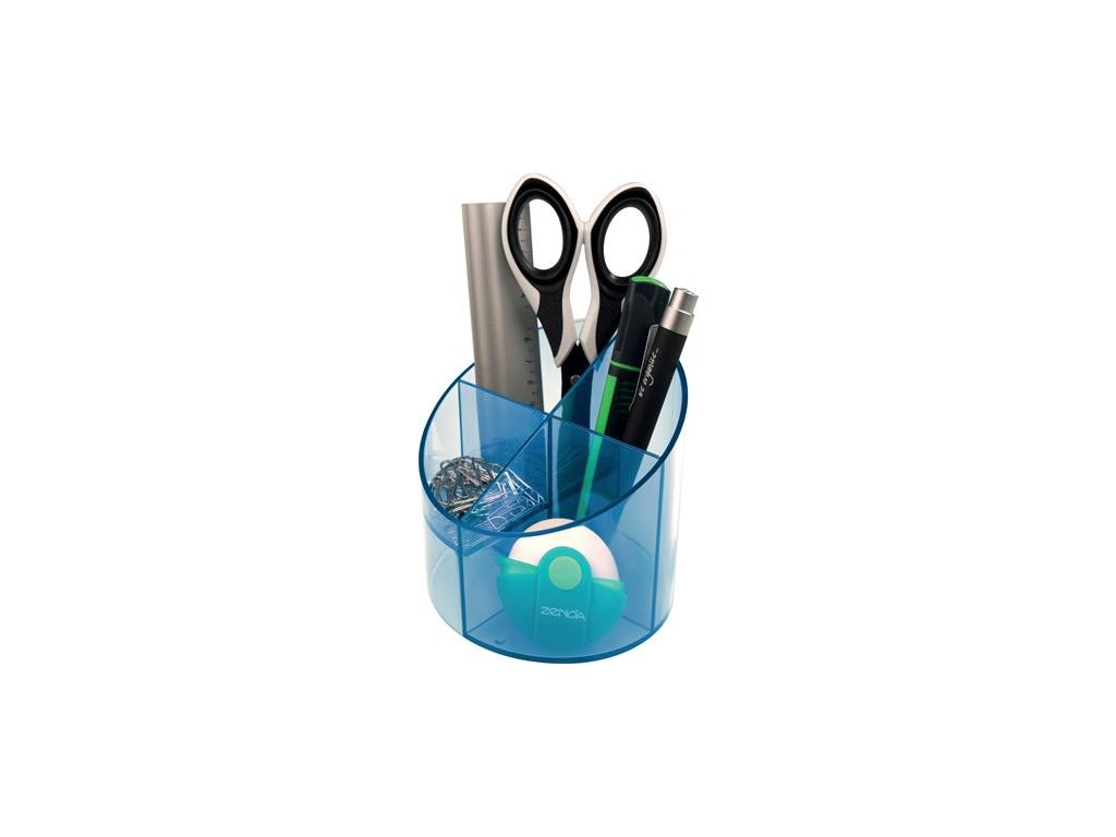 Stojan na písacie potreby, 4 priehradky, HELIT "Economy", priehľadný modrý