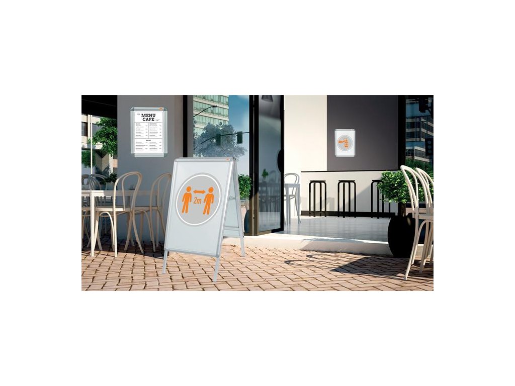 Stojan na plagáty typu A je vodotesný vďaka PVC fólii s inteligentným hliníkovým rámom, ktorý umožňuje jednoduchú výmenu plagátov. Rozloženie: typ A Formát: A2 (48x56cm) Farba: strieborná Materiál: hliníkový rám; PVC povrch; Hmotnosť: 4,53kg Značka: NOBO Výrobca: Esselte Kft. Adresa: 1139 Budapest, Lomb u. 37-39. A ép. II. 8., Hungary Web: https://www.accobrands.com/brands/ Email: hungarymarketing@acco.comDodatočné parametre