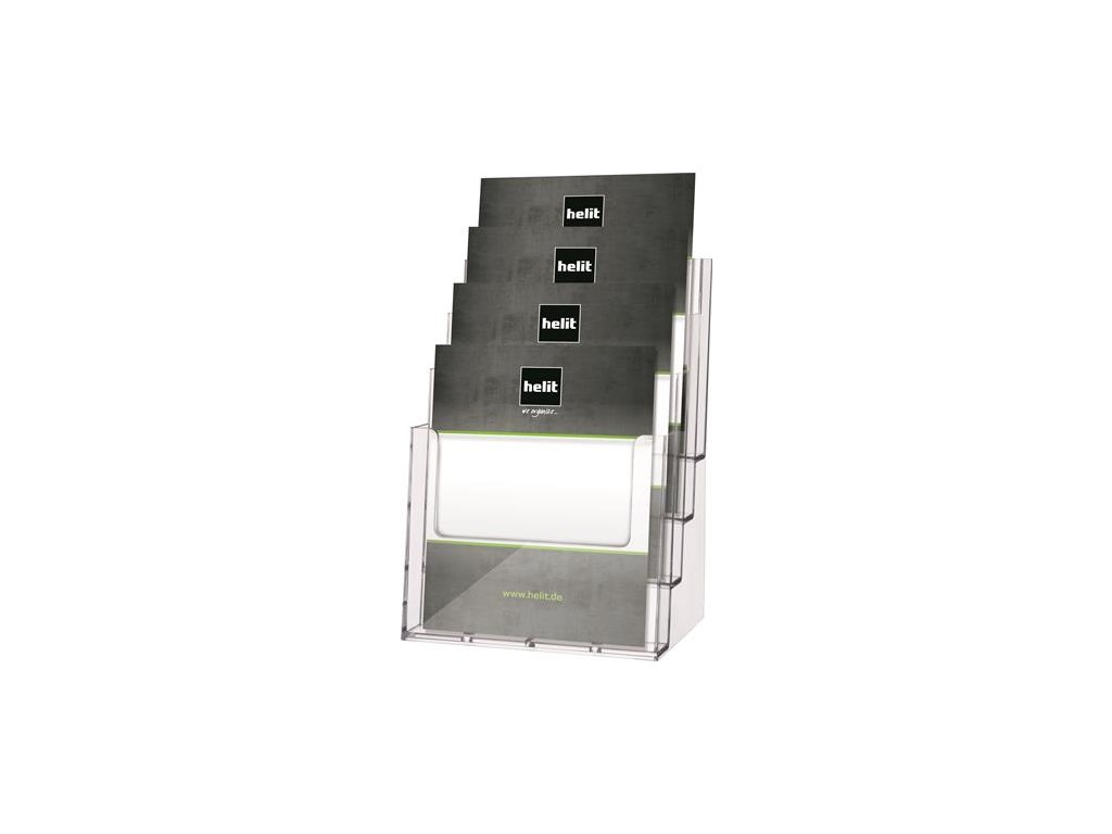 Stojan na prospekty, stolový, A4, 4 priečinky, HELIT