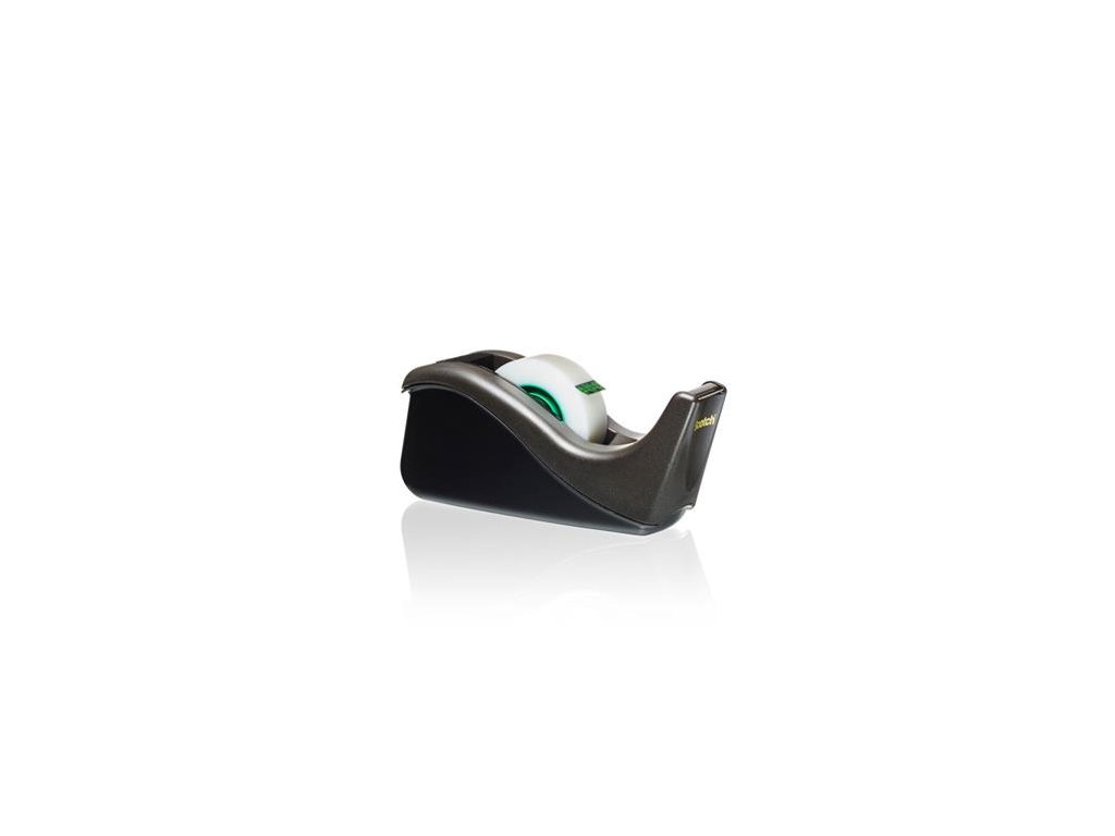 Ergonomický dizajn, pevná cievka, závažie, na jedno rukoväťové dávkovanie, pre pásky do šírky max. 19 mm, naplnený lepiacou páskou Magic™, čiernej farby.