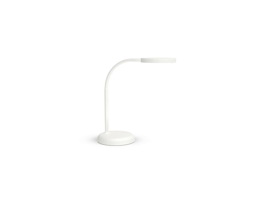Stolová lampa MAUL "Joy" má LED technológiu, vďaka ktorej je energeticky úsporná, má dlhú životnosť a jej moderný a štýlový dizajn zaisťuje to najlepšie pracovné prostredie. - svetelný zdroj: energeticky úsporný LED panel (zabudovaný) - spínacie tlačidlo na hlave svietidla - intenzita svetla: 480 lm - osvetlenie: 1880 Lux vo vzdialenosti 33 cm - 16 LED - teplota farby: teplá biela (3000 K ) - priemerná životnosť LED: 20 000 hodín - priemerná spotreba energie: 7 kWh/1000 h - pevné, pogumované kovové ohybné rameno, možno otočiť a nakloniť - základňa a hlava sú vyrobené zo silného plastu - dĺžka ramena: 35,8 cm - výška v normálna pracovná poloha: 34 cm - plastová hlava lampy, priemer cca. 11,8 cm - stabilná plastová základňa, priemer 13,7 cm - hmotnosť: 0,808 kg - farba: biela - funguje zo siete 220/240 V - hodnotenie energetickej účinnosti: D (stupnica A-G)Dodatočné parametre