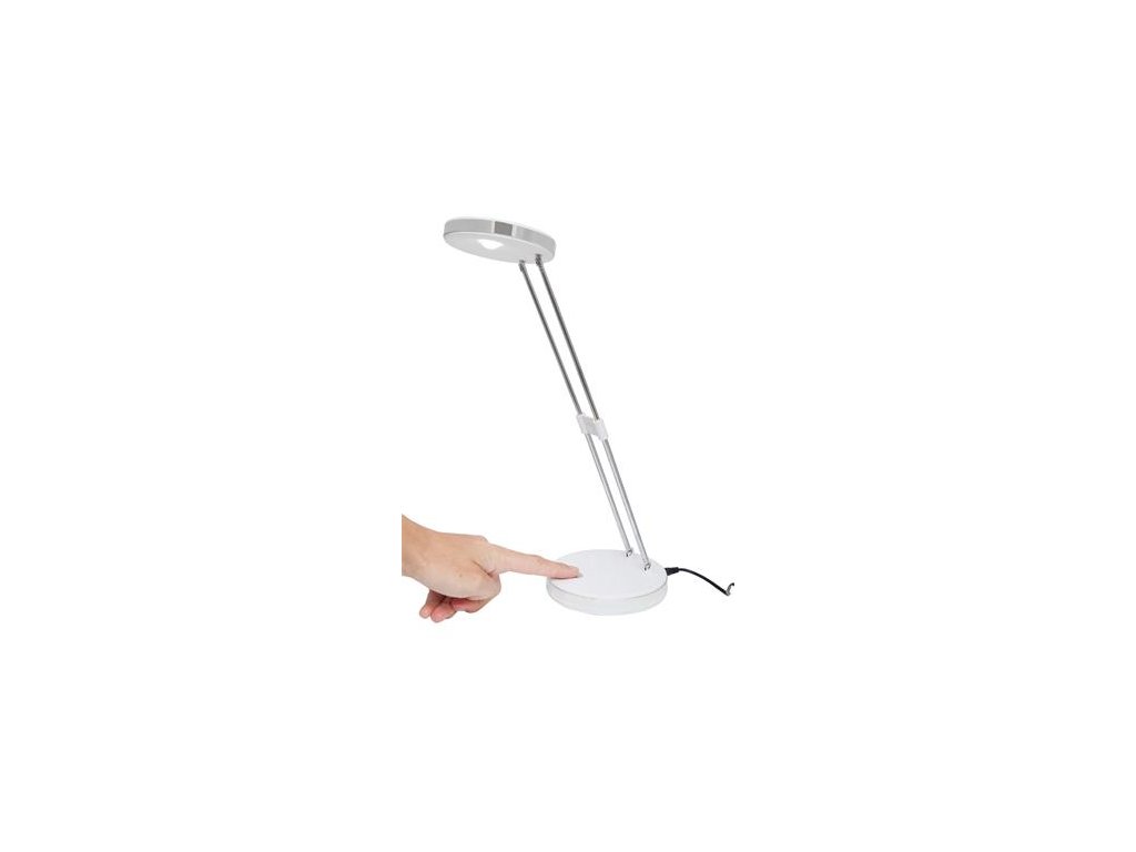 Lampa energeticky úspornej triedy „A“ s LED žiarovkami bez možnosti ich výmeny so životnosťou cez 15 000 hodín s denným neutrálnym bielym svetlom 6500 °K. Svietivosť 1 300 luxov pri vzdialenosti 33 cm od stola, extrémne nízka spotreba energie cca 5 kWh/ 1 000 h. Stabilný podstavec priemeru 13 cm so závažím a podložkou proti poškodeniu dosky stola, sklopná plastová svetelná hlava priemeru 10 cm. Zdvojené teleskopické pevné kovové ramená s nastavením dĺžky od 18,5 do 33 cm. Farba biela.Dodatočné parametre