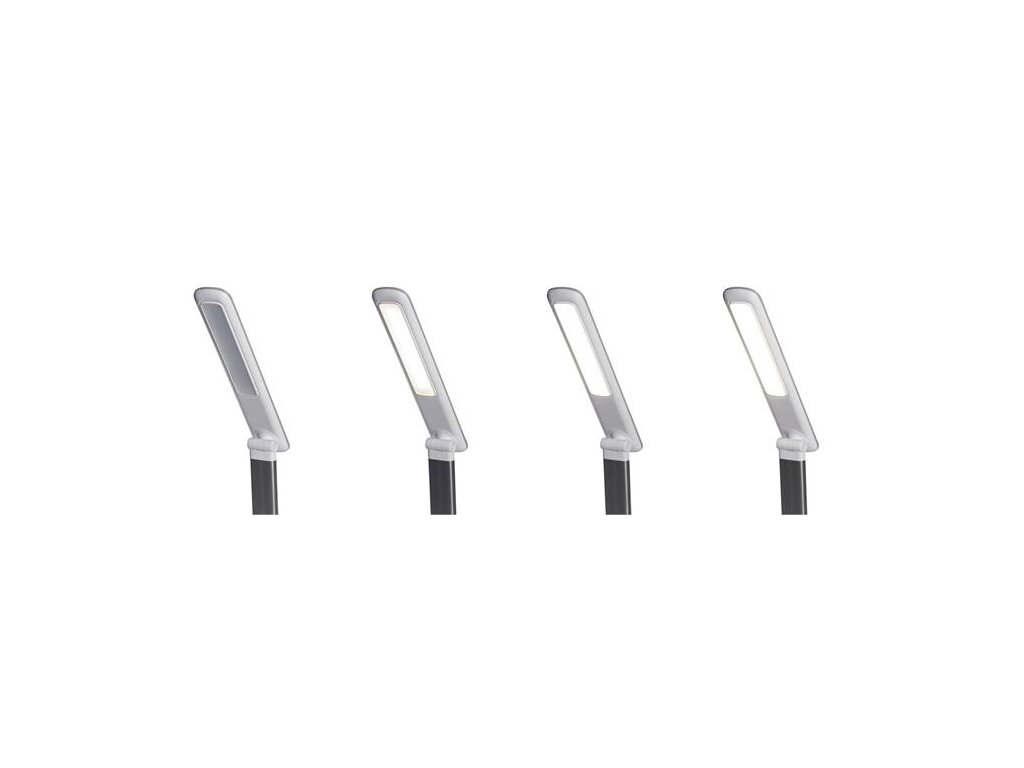 Lampa s integrovaným USB typu A na nabíjanie smartfónu a 5-stupňovým stmievačom s dotykovou funkciou na základni svietidla. Energeticky úsporná trieda „A“ (spektrá A++ - E) s 24 LED žiarovkami bez možnosti ich výmeny so životnosťou 20 000 hodín s teplým bielym svetlom 3 000 °K. Svietivosť 2 060 lx pri vzdialenosti 35 cm od stola, svetelný tok 410 lúmenov, extrémne nízka spotreba energie cca 8 kWh / 1 000 h. Sklopná a otočná svetelná hlavica 26 × 5 cm, stabilný podstavec 18 × 13 cm so závažím a podložkou proti poškodeniu dosky stola. Rameno z eloxovaného hliníka, dĺžka 36,5 cm, výška normálnej pracovnej pozície 41 cm, dĺžka kábla 1,8 m.Dodatočné parametre