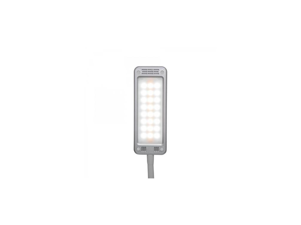 Farebnú teplotu a jas je možné nastaviť v 3 úrovniach v závislosti od dennej doby a potrieb. Dostatočne osvetlí priestor so silnou potrebou svetla, je extra ekonomický, s o 80 % nižšou spotrebou energie v porovnaní s klasickými žiarovkami. Priestorovo nenáročná, ľahko použiteľná, stabilná plastová podošva je vybavená záťažovou vložkou, ktorá slúži ako záťaž. Kovové rameno má pogumovaný povrch, plastovú hlavu svietidla je možné otáčať a nakláňať. Bezpečný a ekologický, recyklovateľný obal. - svetelný zdroj: vstavaný LED panel, s 24 LED diódami (8 teplých bielych a 16 denných bielych) - LED žiarovky nie je možné vymeniť v tele svietidla - priemerná spotreba energie: 6 kWh/1000 h - intenzita svetla: 320 lumenov - teplota farby: nastaviteľná (3 000 K , 5 000 K, 6 500 K) - priemerná životnosť LED: 20 000 hodín - s flexibilným, nastaviteľným ramenom - dĺžka ramena: 35,5 cm - priemerná pracovná výška: cca 36-38 cm - veľkosť hlavy: 16 x 6 cm - veľkosť podrážky: 16,5 x 10,6 cm - hmotnosť: 685 g - funguje zo siete 220/240 V - dotykový spínač - farba: strieborná - záruka: 2 roky - hodnotenie energetickej účinnosti: D (na stupnici A-G)Dodatočné parametre