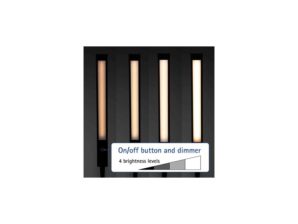 4-stupňový stmievač S upínacou pätkou stmievateľné S flexibilnou oblasťou pre presné nastavenie uhla osvetlenia Mimoriadne hospodárne: Moderná technológia LED Rameno vyrobené z kovu s pogumovaným povrchom Hlava svietidla z hliníka, dĺžka 32 cm, otočná a sklopná Dĺžka ramena 38 cm, upínacia pätka z kovu (šírka upnutia do 4,5 cm ) Pohodlné ovládanie dotykovým panelom: zapnite hlavu žiarovky.Dodatočné parametre