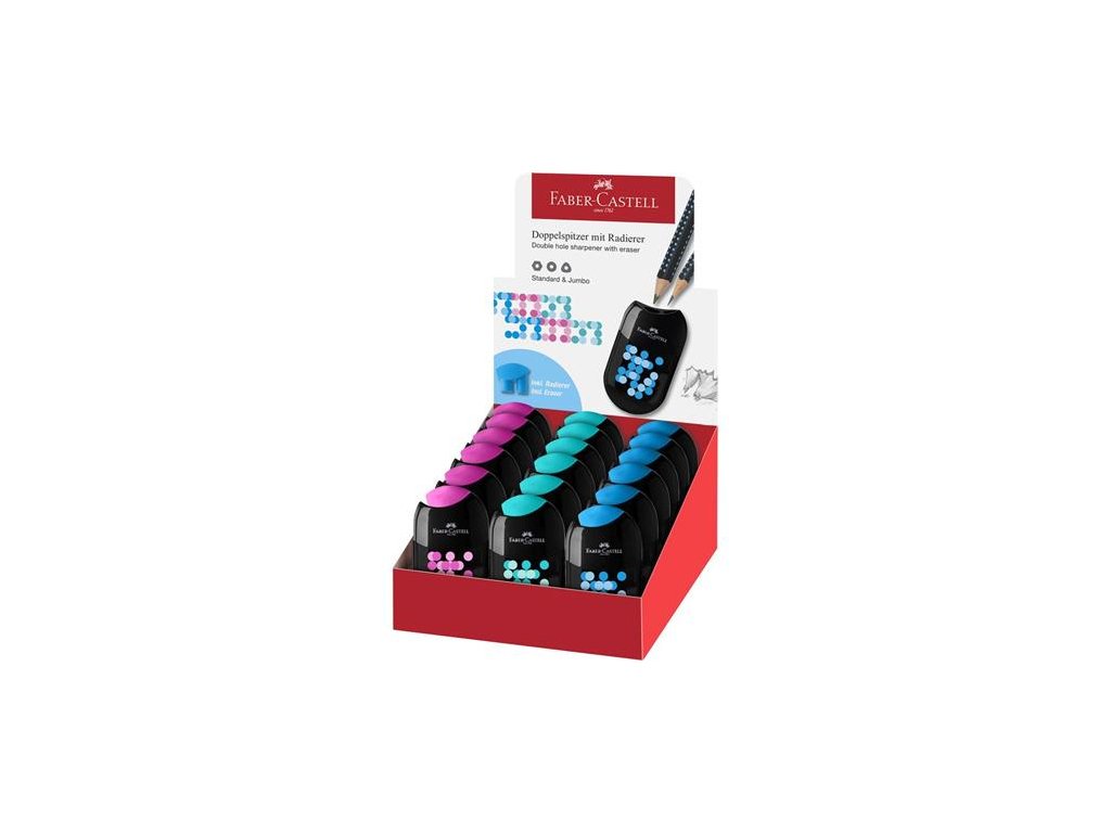Strúhadlo, displej, dvojdierové, 2 zásobníky, FABER-CASTELL, mix farieb
