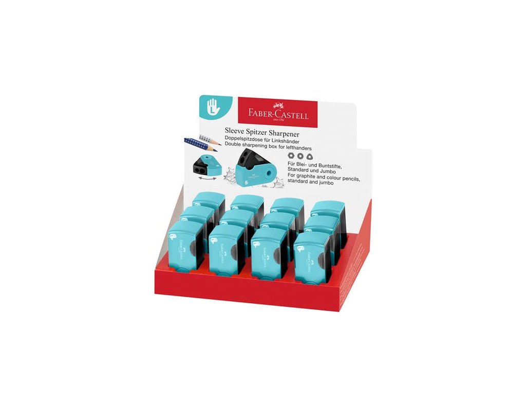 Strúhadlo, displej, dvojdierové, so zásobníkom, pre ľavákov, FABER-CASTELL "Sleeve", tyrksové