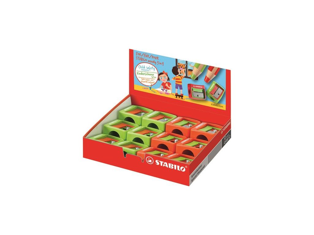 Strúhadlo, jednodierové, STABILO "Woody 3 in 1", rôzne farby