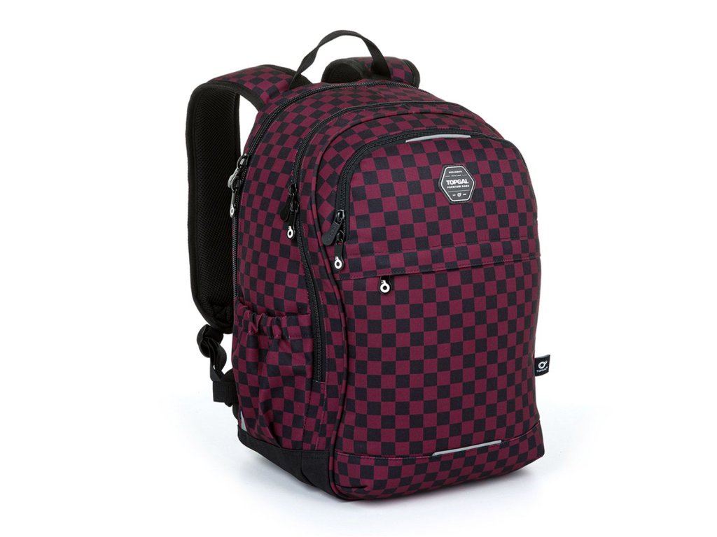Objemný dvojkomorový batoh so šachovnicovým vzorom. Chrbát batohu je polstrovaný, anatomicky tvarovaný a pevný vďaka ľahkej hliníkovej výstuhe. Vnútri zadnej komory je umiestnené polstrované vrecko na notebook aj tablet a druhé menšie na mobil či powerbanku.