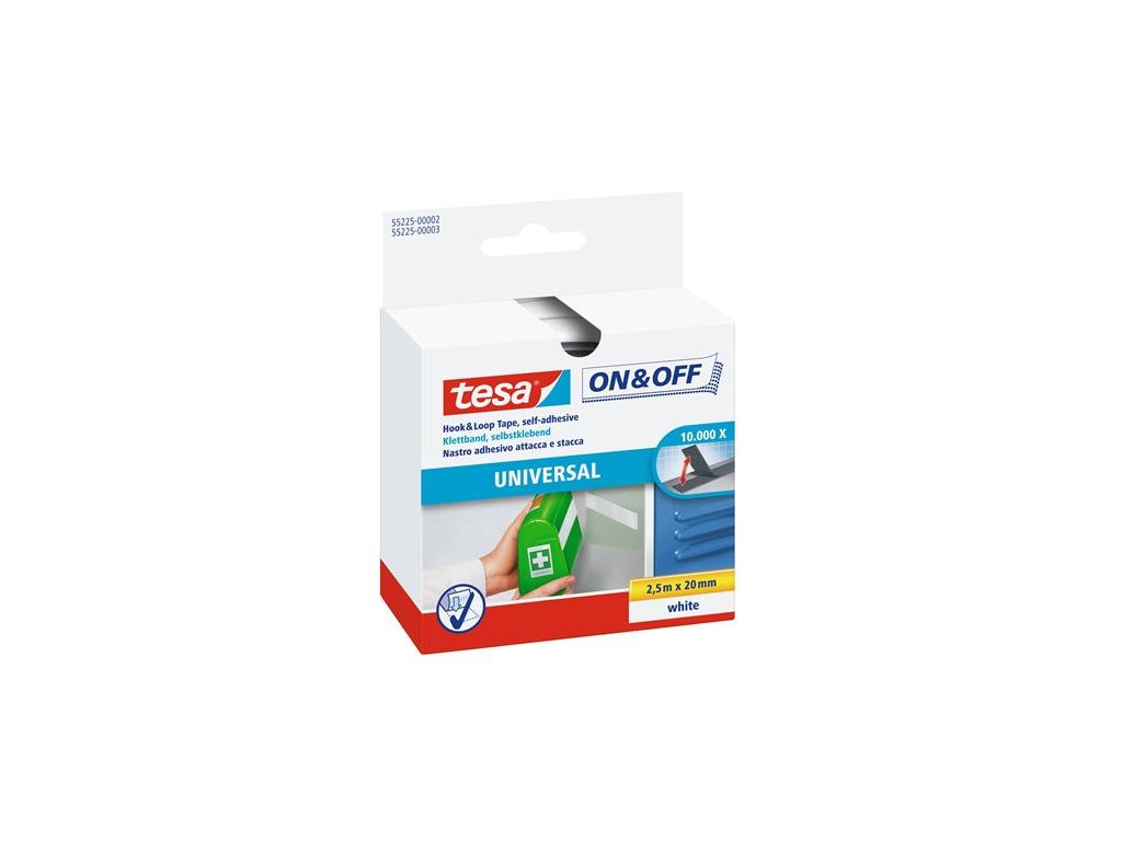 Suchý zips, samolepiaci, 20 mm x 2,5 m, TESA "On&Off", biela