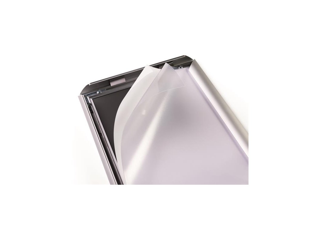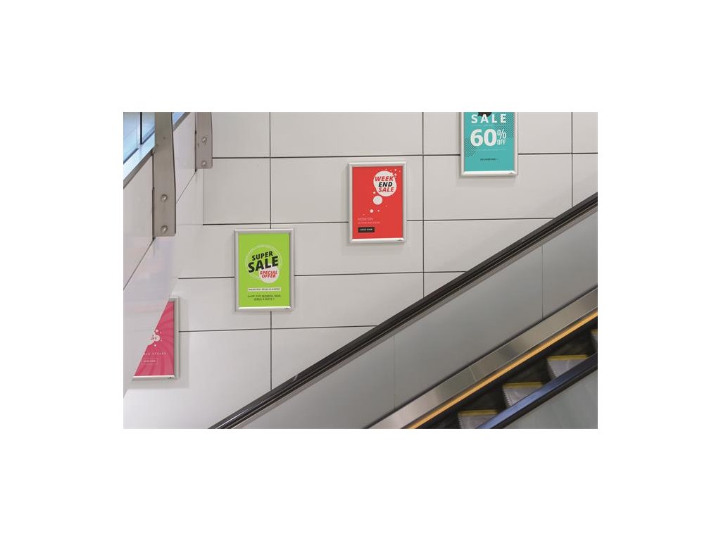 Stabilný hliníkový rám s príchytkami DIN A3, v striebornej farbe. - rýchla a jednoduchá výmena informácií - nereflexná fólia odolná voči UV žiareniu - odolný proti rozbitiu, polystyrénový zadný panel - s profilom na pokos - vďaka skrytým otvorom za profilmi sa dá jednoducho namontovať na stenu, príp. dá sa natrvalo upevniť pomocou priloženej samolepiacej lišty - dá sa upevniť vo zvislej aj vodorovnej polohe - súčasťou balenia je montážna sada pozostávajúca zo skrutiek, hmoždiniek a štyroch samolepiacich pásikovDodatočné parametre