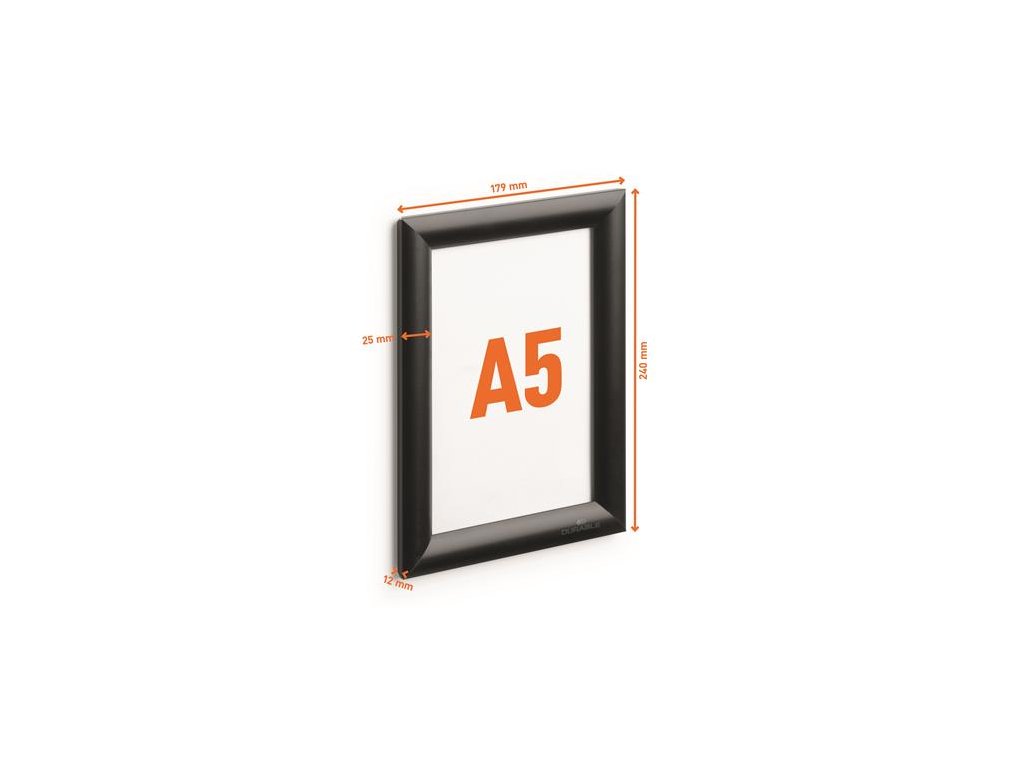 Tabuľa na plagáty, nástenná, A5, hliníkový rám, DURABLE, čierna