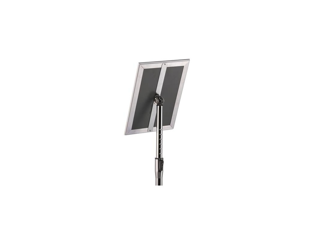 Rýchlo zostaviteľný informačný stojan so stabilným hliníkovým rámom DIN A4, v striebornej farbe - pre väčšiu stabilitu možno základňu voliteľne vyplniť pieskom. Piesková plnička nie je súčasťou balenia -okrúhly podstavec s gumeným krúžkom, ktorý zabraňuje poškriabaniu podlahy -postupne nastaviteľná teleskopická tyč, výškovo nastaviteľná od 770 mm do 1205 mm. Maximálna výška je vo formáte na výšku. - rám je možné jednoducho previesť na formát na výšku alebo na šírku. -nastaviteľný uhol čítania vďaka guľovému kĺbu. -nereflexná fólia odolná voči UV žiareniu -odolný proti rozbitiu, polystyrénový zadný panel -s profilom na pokos -ideálny v pohostinstve, maloobchode, múzeách, výstavách, veľtrhoch, recepciách, čakárňach a konferenčných miestnostiach atď.Dodatočné parametre