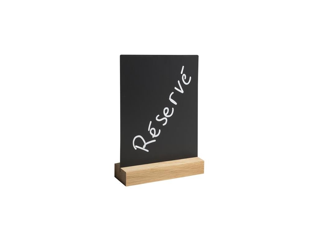 Ideálny na vystavenie jedálnych lístkov, cien či ponúk na stole. -vyrobený z ABS plastu -vhodný na písanie kriedou alebo kriedovým popisovačom -obojstranný -zvislá orientácia -podstavec z dubového dreva -rozmery: 148 x 52 x 210 mmDodatočné parametre
