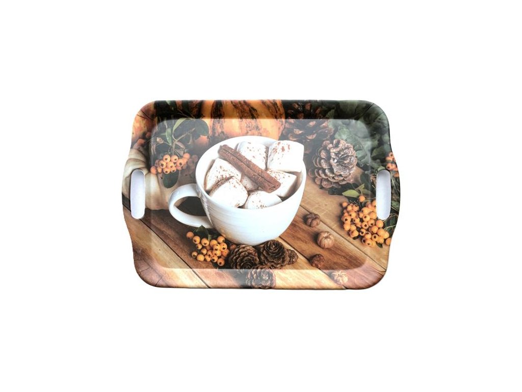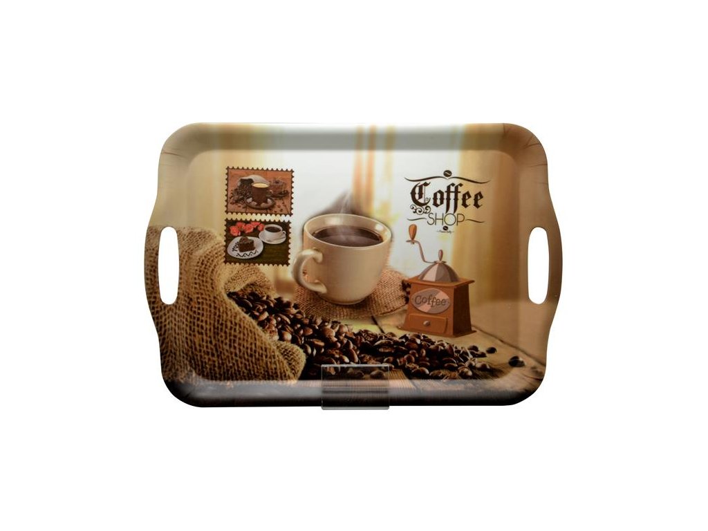 Tácka, hranatá, plastová, vzor kávy, 35,5x25,5 cm