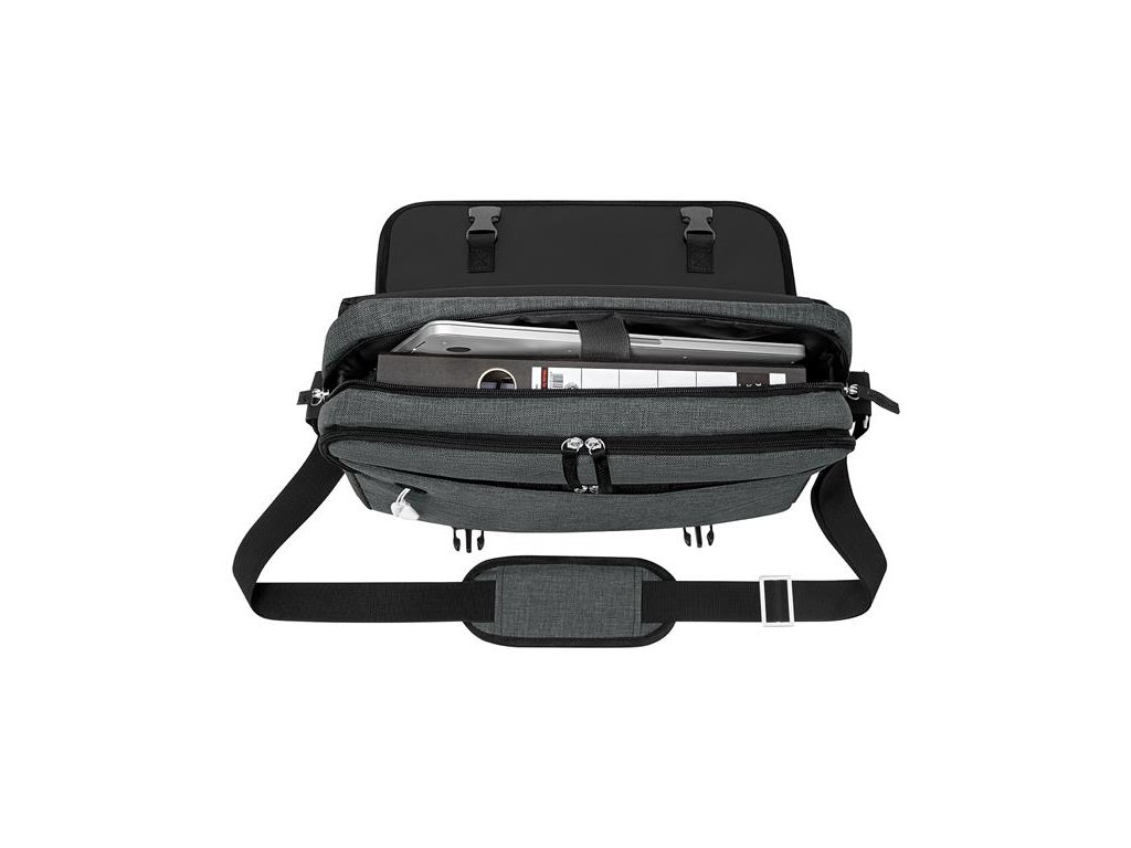 - taška kompatibilná s notebookmi s uhlopriečkou 15,6" - veľká, vystužená priehradka na notebook - predné vrecko s vedením káblov, vhodné na uskladnenie smartfónov, kariet, pier atď. - s protišmykovou ochranou na popruhu, popruh je nastaviteľný - materiál: polyester - rozmery: 40x10x30 cmDodatočné parametre