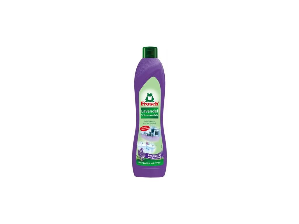 Výborne odstraňuje všetky druhy nečistôt, ako mastnotu, zvyšky mydla a vodný kameň zo všetkých keramických, smaltovaných, antikorových a sklenených povrchov. Čistiaci krém Frosch s vôňou levandule funguje na báze mramorovej múčky a zanecháva príjemnú levanduľovú vôňu. Nepoužívajte na umelohmotné povrchy, napr. akryláty alebo plexisklo Eko produkt Čistiaca formula na prírodnej báze Rastlinné tenzidy Bez fosfátov, formaldehydov a rozpúšťadiel Balenie: 500 ml Značka: FROSCH Výrobca: Werner & Mertz GmbH Adresa: AT, 5400 Hallein, Neualmerstraße 13 & DE, 551230 Mainz, Rheinalee 96 Web: www.werner-mertz.at Email: info@erdal.atDodatočné parametre