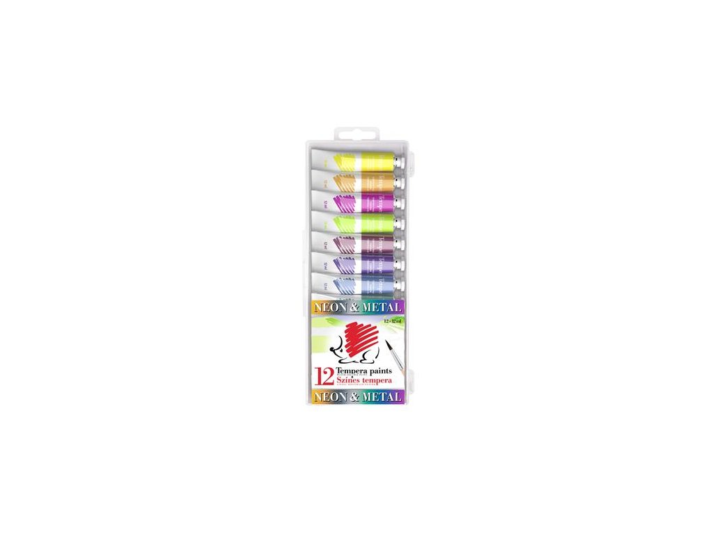 Tempera, 12 ks/bal, ICO "Ježko", metalické a neónové farby