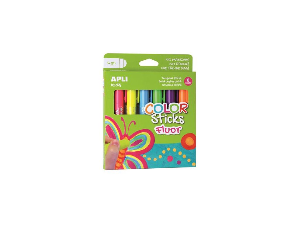 Tempera, tyčinka, v tvare pera, APLI Kids "Color Sticks Fluor", 6 rôznych fluo farieb