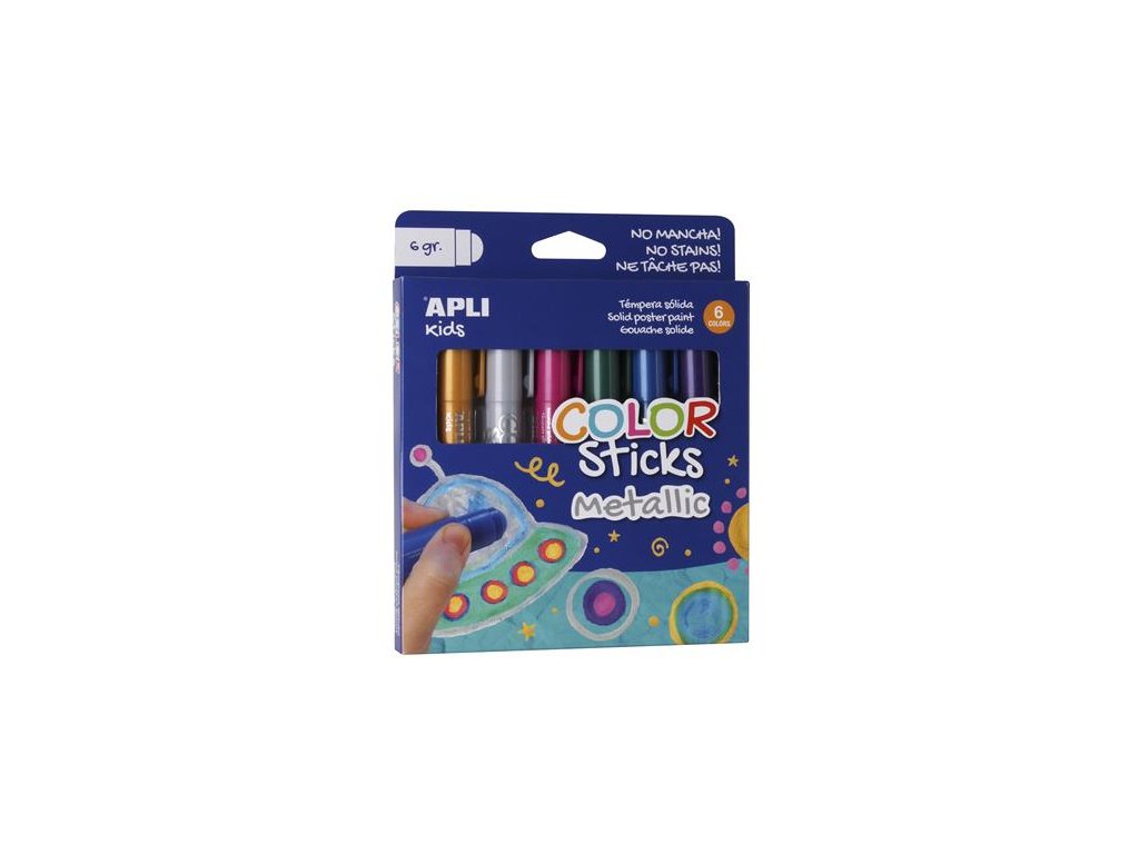Tempera, tyčinka, v tvare pera, APLI Kids "Color Sticks Metallic", 6 rôznych metalických farieb