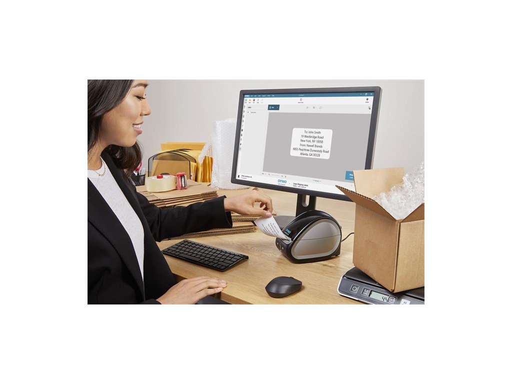 Nový model tlačiarne samolepiacich etikiet. Tlačí až 62 etikiet za minútu. So softvérom DYMO Connect vytlačíte rýchlo a jednoducho profesionálne adresné a expedičné etikety, akékoľvek čiarové a QR kódy, môžete tiež vytvárať a tlačiť firemné menovky, logá a mnoho ďalších etikiet. Technológia termotlače - bez potreby nákladných atramentových náplní či tonerov. Nová funkcia - automatické rozpoznávanie veľkosti, typu a počtu zostávajúcich etikiet na roli v tlačiarni. Integrovaný adresár pre jednoduchý výber adries a rýchlu tlač viacerých adresných etikiet. Prepojiteľný s PC / MAC cez USB rozhranie. Rozmer: 140 mm x 127 mm x 188 mm 2-ročná záruka + 1 rok navyše pri registrácii na www.dymo.com Značka: DYMO Výrobca: Newell Poland Services Sp. Z.o.o. Adresa: Poznan 61-894, Poland Web: www.DYMO.com Email: DymoEurope@newellco.comDodatočné parametre