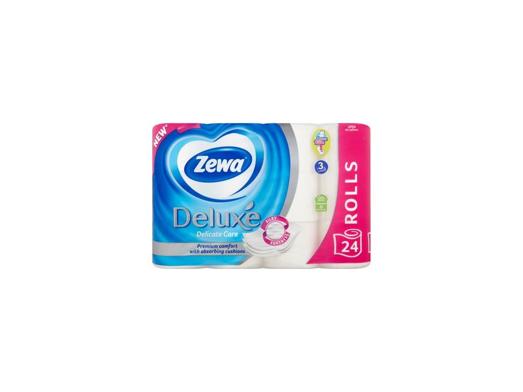 Vylepšené produkty s vôňou Zewa Deluxe majú účinok neutralizujúci zápach (technológia Odor Block). Toaletný papier neutralizuje nepríjemné pachy prichádzajúce z toalety. Vďaka inovatívnej technológii dodáva miestnosti príjemnú vôňu. - tri vrstvy - mäkké, jemné na dotyk - bez zápachu - balenie: 24 roliek/bal