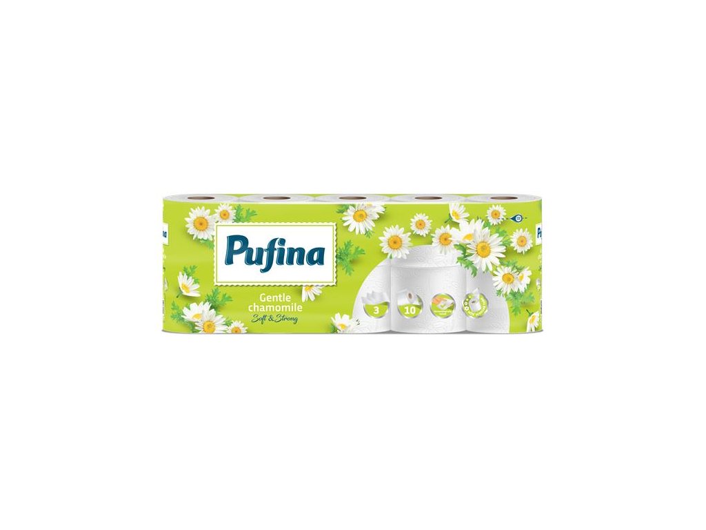 Toaletný papier, 3-vrstvový, malý kotúč, 10 kotúčov, PUFINA "Chamomile", s vôňou harmančeka