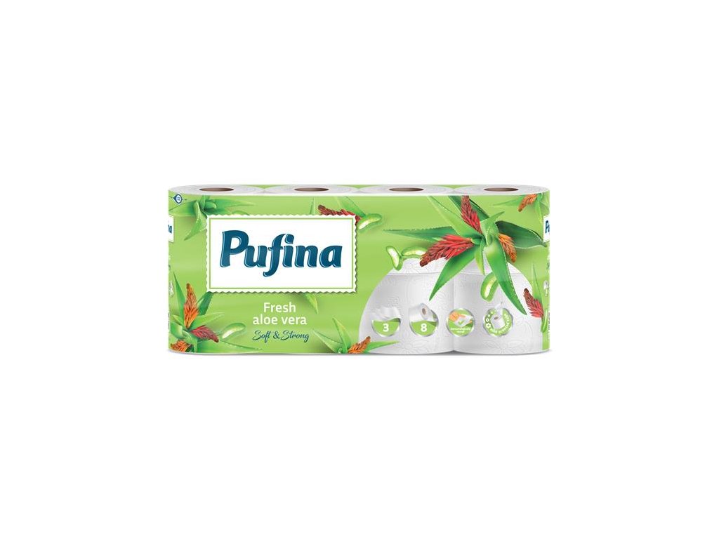 Toaletný papier, 3-vrstvový, malý kotúč, 8 kotúčov, PUFINA "Aloe Vera"