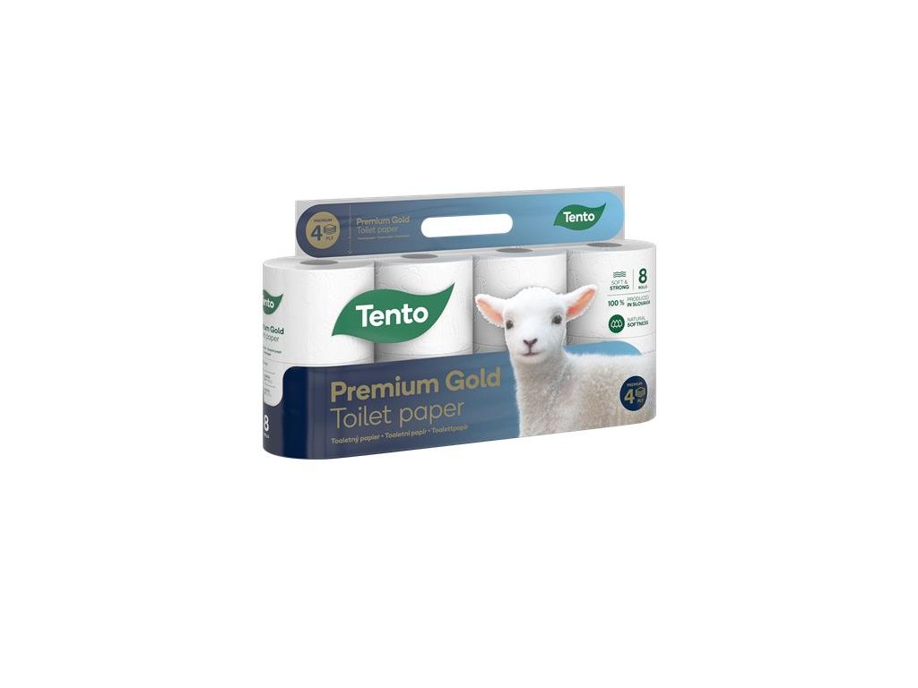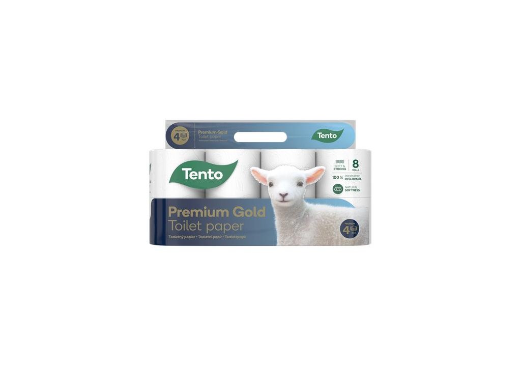 Toaletný papier, 4-vrstvový, malý kotúč, 8 kotúčov, TENTO "Premium Gold", biela