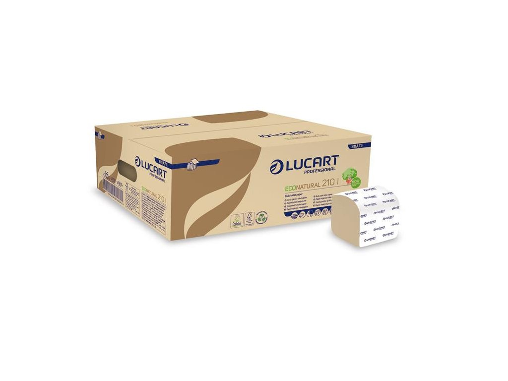 Toaletný papier, skladaný, 2 vrstvy, 210 listov/bal., LUCART "EcoNatural", havana hnedá