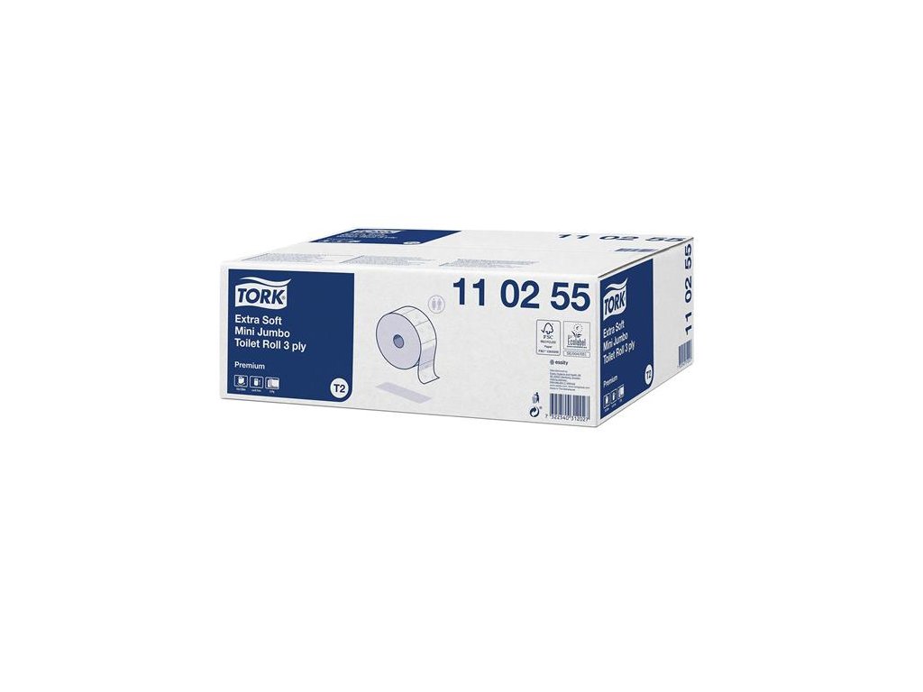 Toaletný papier, T2 systém, 3-vrstvový, priemer: 18,7 cm, Premium, TORK "Mini Jumbo", biela