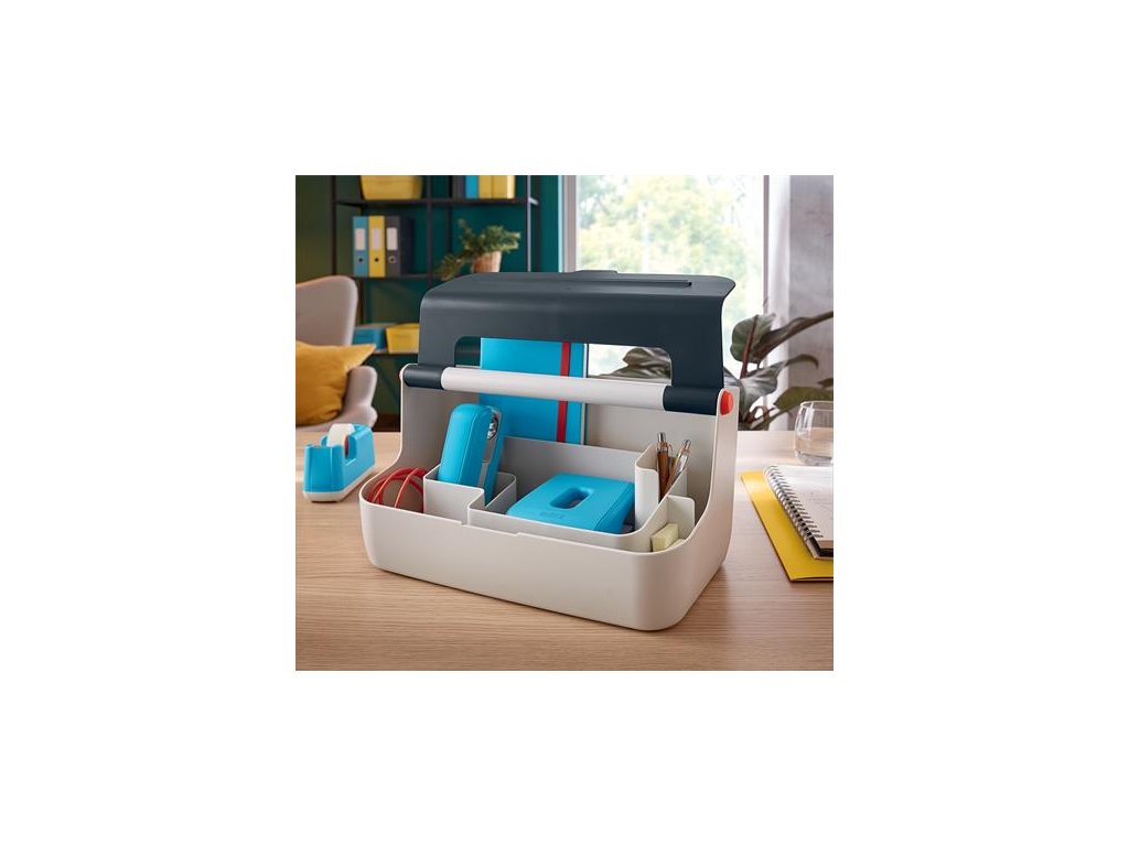 Úložná škatuľa, mobilná, s držiakom, LEITZ "Cosy", zamatová sivá
