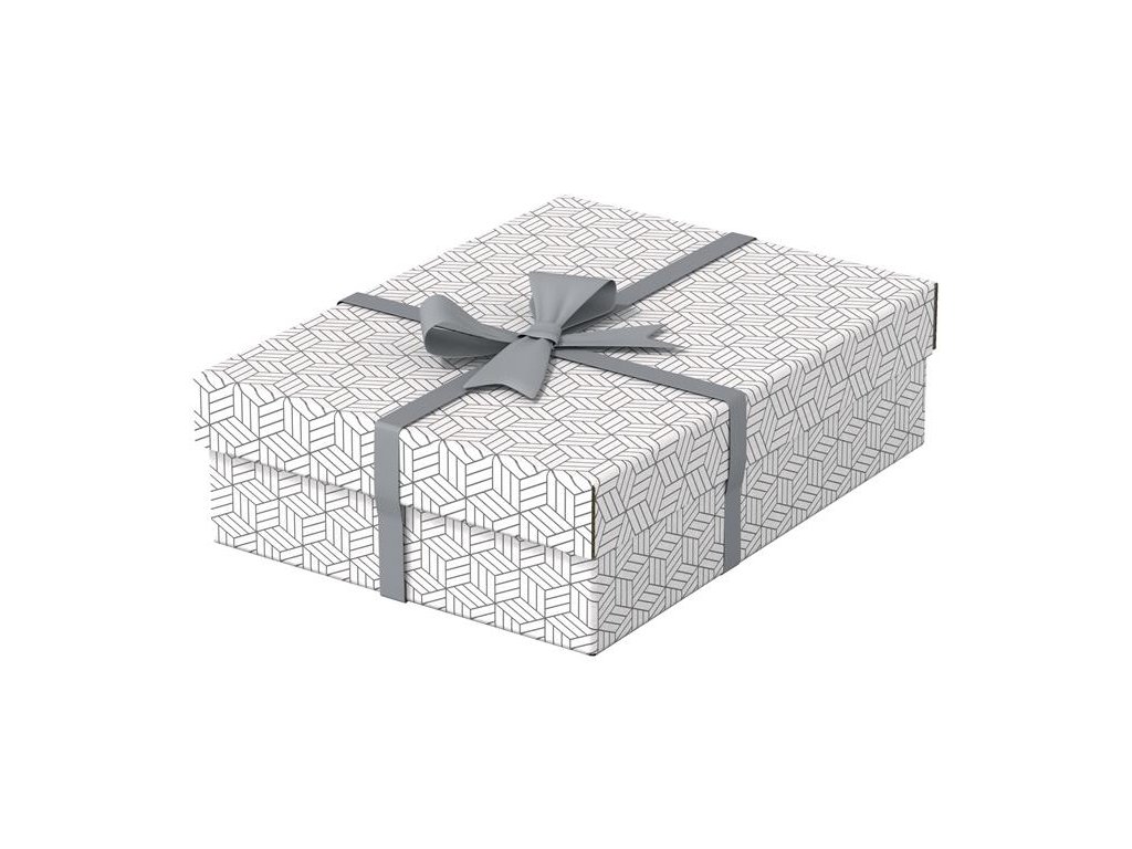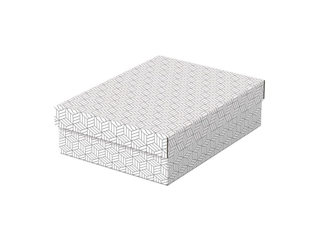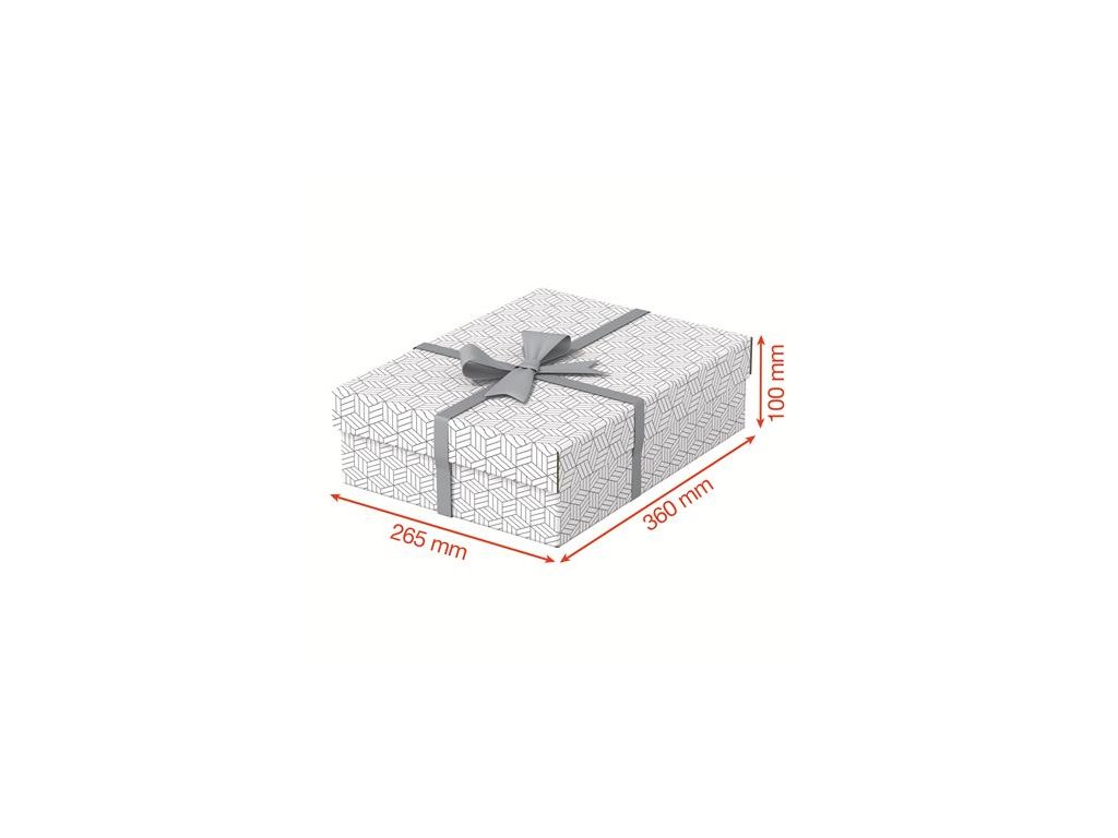 Súprava troch stredných lepenkových úložných boxov s moderným a štýlovým geometrickým dizajnom. Ideálne na darčeky alebo na ukladanie osobných dokumentov, hračiek, kníh a ďalších drobností. Možno používať samostatne alebo uložiť na policu. Použite box na zabalenie darčeka a obdarovaný ho potom môže použiť ako úložný box. Odnímateľné veko skryje obsah a ochráni ho pred prachom. Neutrálne farby a dizajn doplnia akýkoľvek štýl a box je vďaka nim možné použiť ako darček. Dodávajú sa zabalené naplocho a dajú sa rýchlo a ľahko zostaviť. Steny sa pri zostavovaní preložia cez seba, takže sú dvojnásobne pevné. Povrch možno utrieť. Vyrobené z pevnej a odolnej 100% recyklovanej a 100% recyklovateľnej vlnitej lepenky s certifikáciou FSC Obal je 100% recyklovaný a 100% recyklovateľný bez obsahu plastov. Rozmery: 265 mm x 100 mm x 360 mm Značka: ESSELTE Výrobca: Esselte Kft. Adresa: 1139 Budapest, Lomb u. 37-39. A ép. II. 8., Hungary Web: https://www.accobrands.com/brands/ Email: hungarymarketing@acco.comDodatočné parametre