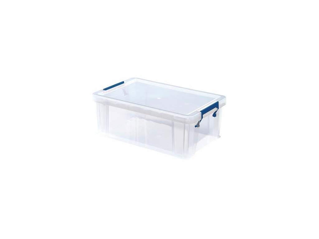 Pevný plastový úložný box pre jednoduché uloženie potrieb v domácnosti alebo kancelárii. Vlastnosti: stohovateľný box; uzatvárateľné vekom s poistkou Click-Lock; vhodné pre najrôznejšie predmety; schválené pre uskladnenie potravín; chráni pred prachom a vlhkosťou; silný a pevný materiál; nárazuvzdorný; 100% bez BPA; plne recyklovateľný; Farba: priehľadná Materiál: plast Objem: 10 l Rozmery: 14x34x21,5 cm (VxŠxH)Dodatočné parametre