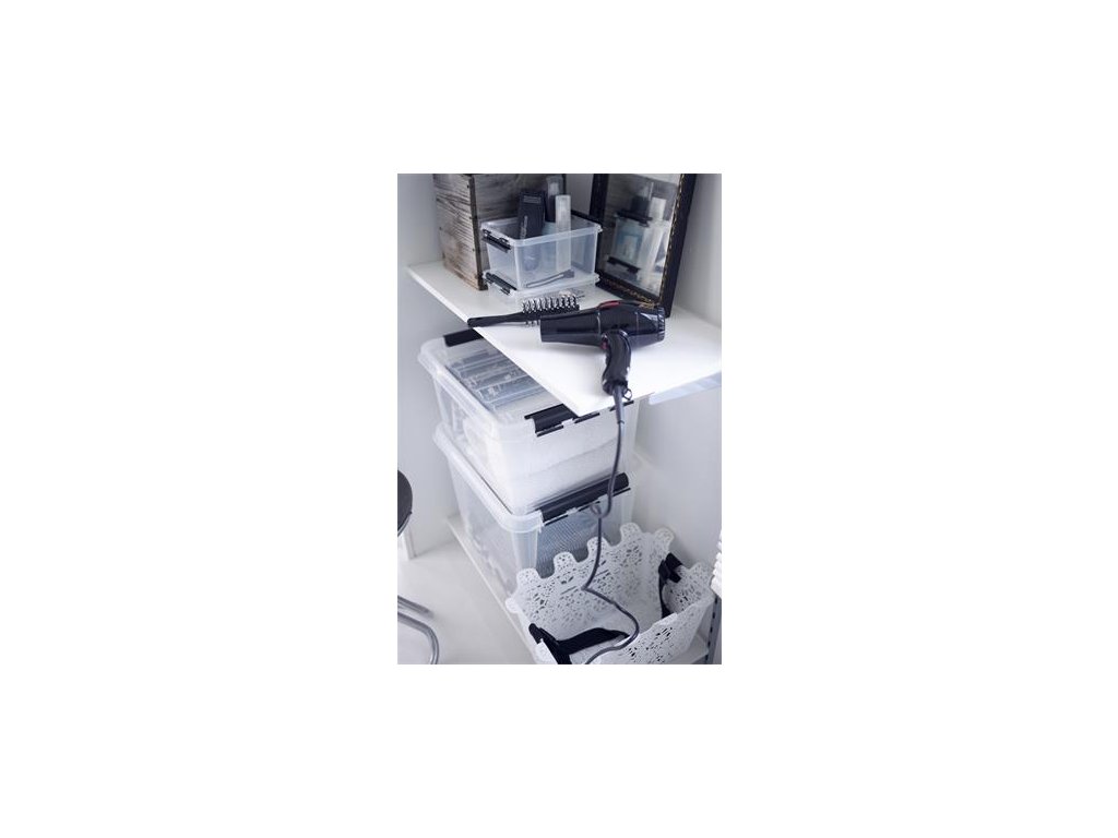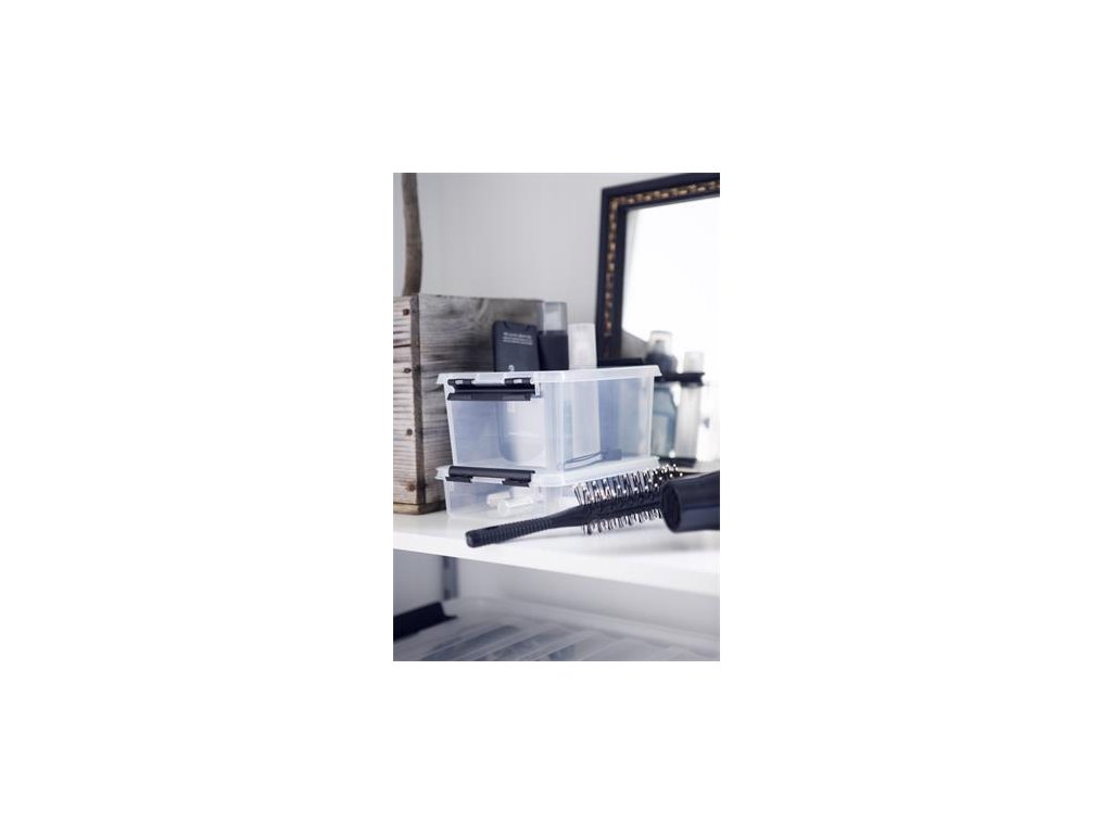 Úložný box, plastový, 1 l, čierne úchytky, SMARTSTORE "Classic 1", priehľadný